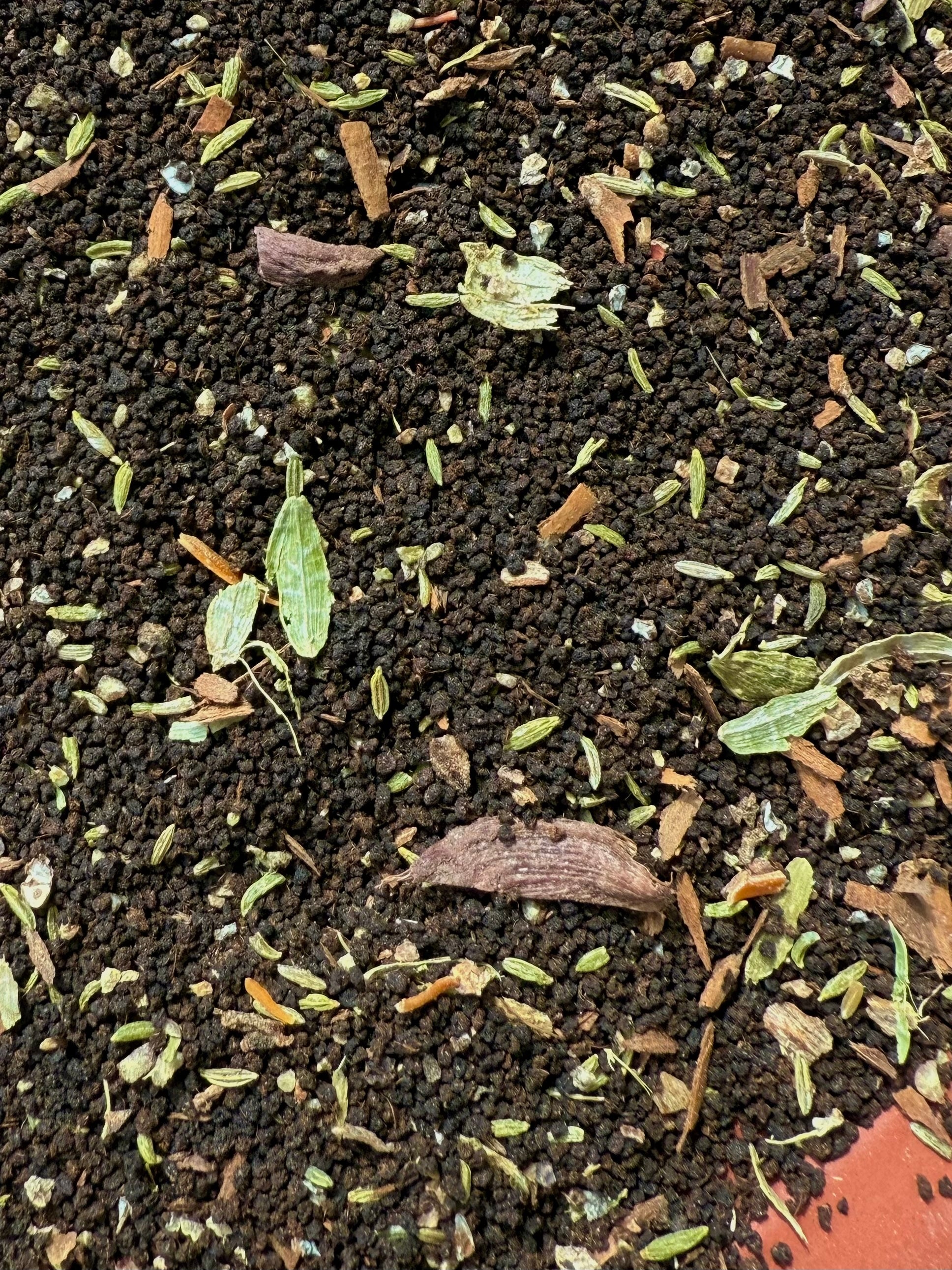 + Assam Black Tea, Black Cardamom, Green Cardamom, Nutmeg, Mace, Fennel, Cinnamon, Black Pepper, Ginger, Cloves